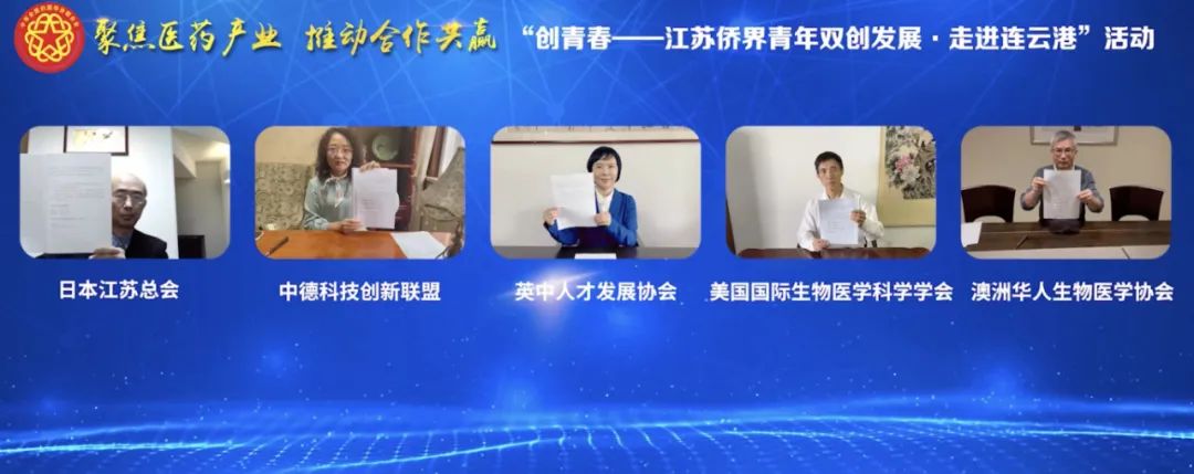 活動(dòng)中,集團(tuán)公司通過(guò)線上方式,與日本江蘇總會(huì)、中德科技創(chuàng)新聯(lián)盟、英中人才發(fā)展協(xié)會(huì)、美國(guó)國(guó)際生物醫(yī)學(xué)學(xué)會(huì)、澳洲華人生物醫(yī)學(xué)科學(xué)協(xié)會(huì)等海外僑社團(tuán)簽署了合作意向書;集團(tuán)公司國(guó)際醫(yī)藥創(chuàng)新產(chǎn)業(yè)園與4家省內(nèi)僑青企業(yè)現(xiàn)場(chǎng)簽訂合作協(xié)議。