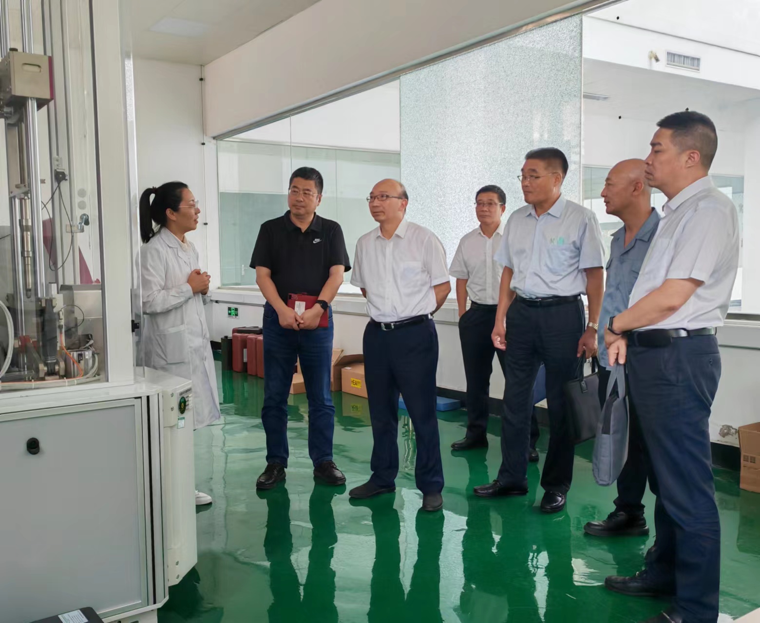 9月5日,集團公司黨委書記、董事長丁銳,副總經理王士華、劉承志等一行到纖維新材料研究院調研。
