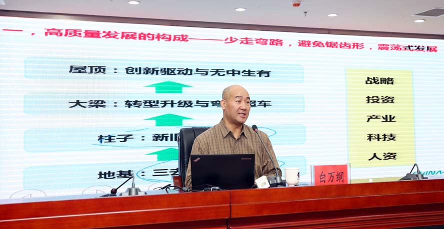 本次培訓(xùn)班邀請(qǐng)上海華彩咨詢(xún)集團(tuán)總裁白萬(wàn)綱博士、副總裁江斐圍繞“高質(zhì)量發(fā)展導(dǎo)向下的企業(yè)改革與企業(yè)管理”、“新常態(tài)背景下的集團(tuán)型企業(yè)的資本運(yùn)作”作了專(zhuān)題輔導(dǎo)培訓(xùn)。兩位專(zhuān)家學(xué)者結(jié)合工投集團(tuán)實(shí)際,理論與實(shí)踐相結(jié)合,運(yùn)用大量翔實(shí)的數(shù)據(jù)和實(shí)例,祥細(xì)闡述和解讀了在高質(zhì)量和新常態(tài)的發(fā)展大勢(shì)下,國(guó)有企業(yè)跨越發(fā)展與改革管理、資本運(yùn)作三者之間的緊密聯(lián)系,主題鮮明、內(nèi)涵豐富,具有很強(qiáng)的針對(duì)性、前瞻性和指導(dǎo)性。