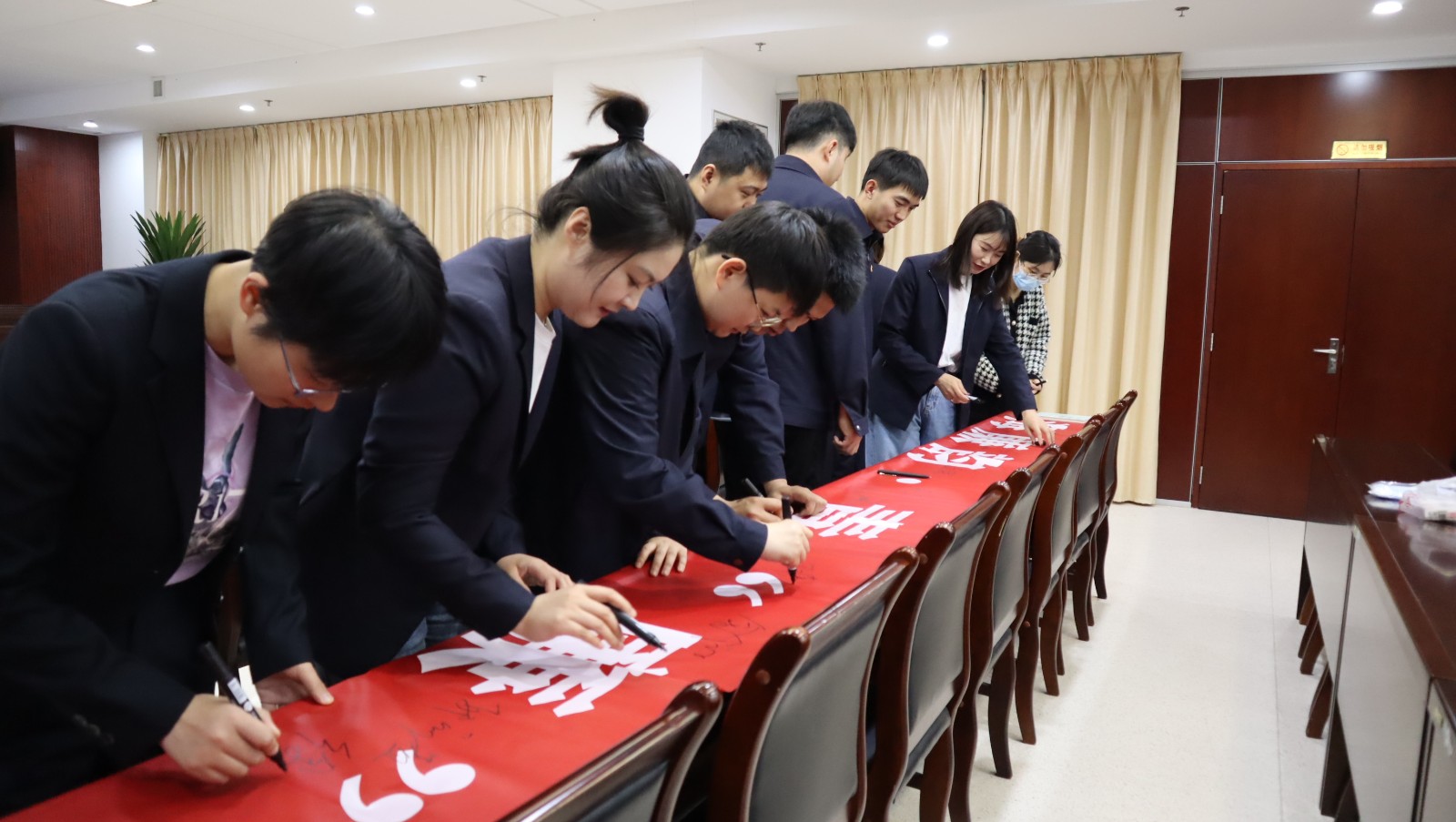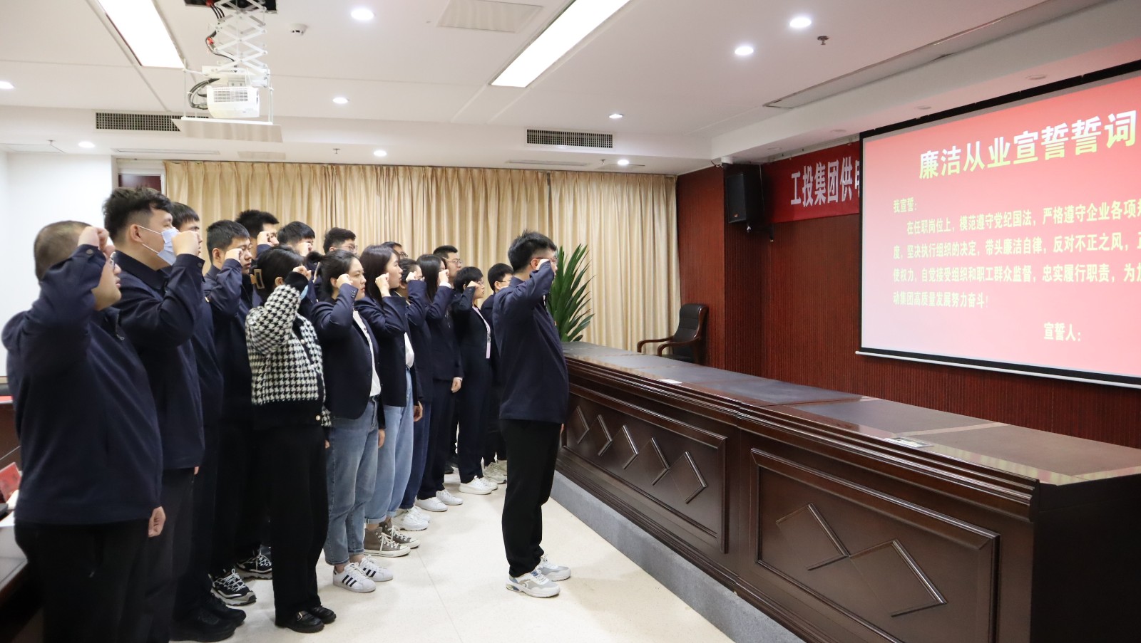 會(huì)上,九零后年輕管理人員參加廉潔從業(yè)宣誓并簽訂個(gè)人廉潔承諾書(shū)。(王雨)