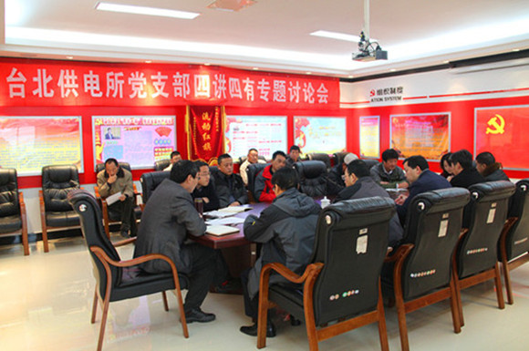 根據市委組織部統一部署,11月21日下午,臺北供電所組織黨員開展了以“做‘四講四有’合格黨員”為主題的大討論活動。集團公司黨群工作部副部長夏正斌一行、公司副書記王志軍及相關部門人員參加會議。