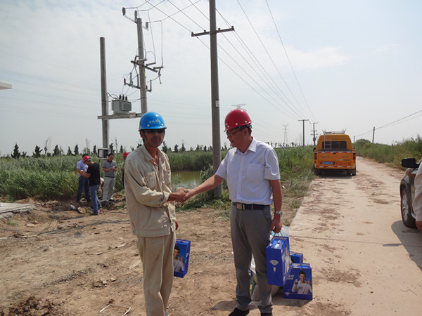近日,中午天氣持續(xù)高溫炎熱,公司經理孫政權、工會主席王志軍、副經理袁慶國等領導,于9月1日上午,來到灌西供電所施工現(xiàn)場看望慰問一線職工,并給他們送去了食品、飲料等慰問品。