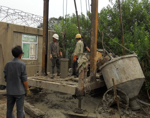 圖為管港變電所增容改造工程的鐵塔塔基灌砼施工現(xiàn)場(chǎng)