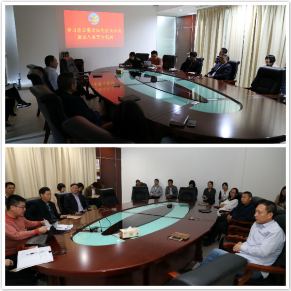 5月23日上午,機(jī)關(guān)全體黨員在公司1203會(huì)議室參加了學(xué)習(xí)市紀(jì)委《連云港市深化機(jī)關(guān)作風(fēng)建設(shè)八條禁令》通知精神的會(huì)議,機(jī)關(guān)黨支部書(shū)記朱兵主持會(huì)議并傳達(dá)了深化機(jī)關(guān)作風(fēng)建設(shè)八條禁令文件的精神及要求。