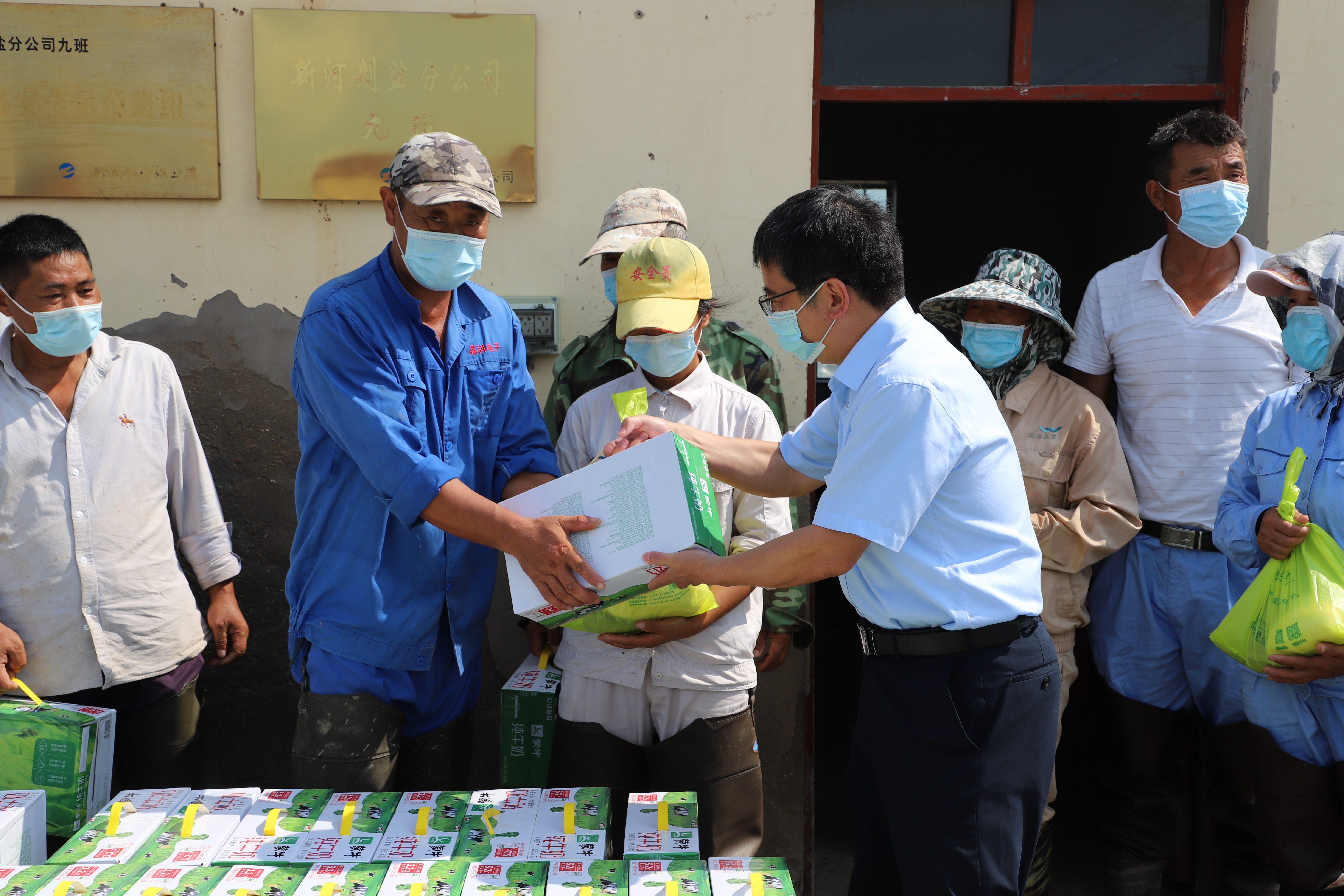 連日來,灌西投資公司廣大干群經歷著高溫酷暑天氣和嚴峻的新冠病毒疫情形勢的雙重考驗,堅守在鹽業生產一線的職工的身心健康牽動的集團領導的心,8月3日上午,集團公司常務副總經理楊國新、工會副主席陸向東一行來灌西公司看望慰問高溫下堅守崗位的鹽業生產工人,并送上牛奶、白糠、綠豆、大米等清涼消暑慰問品。