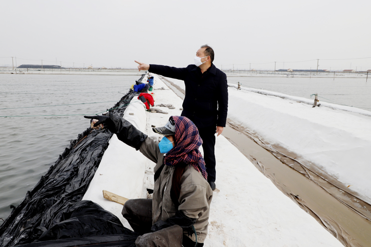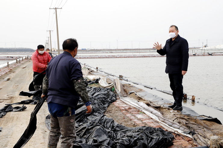 李國文首先來到日曬制鹽公司生產灘頭,現場察看復工復產情況。徒步灘頭,有的在補塑布、有的在修整廩基、有的在更換塑布,每個班組都在搶抓時間準備春扒工作。隨后李國文先后前往西旺養殖池塘、明威田頭、宵洋物流碼頭,每到一處都詳細詢問職工口罩、消毒酒精等防護物資夠不夠用,有沒有外地回來的員工,并叮囑員工少接觸外地回來人員,錯開上下班時間,外出要帶口罩,保護好自己才能更好的為企業創造效益。
