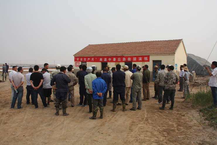 為了加強公司全員的安全預防意識,增強應對緊急事件的自我保護和防衛能力, 6月29日上午,灌西投資公司在新河制鹽分公司九班聯合舉行“高溫中暑應急救援演練”活動,公司副總經理古浩光、各單位分管安全領導、日曬制鹽一線班組長參加觀摩。