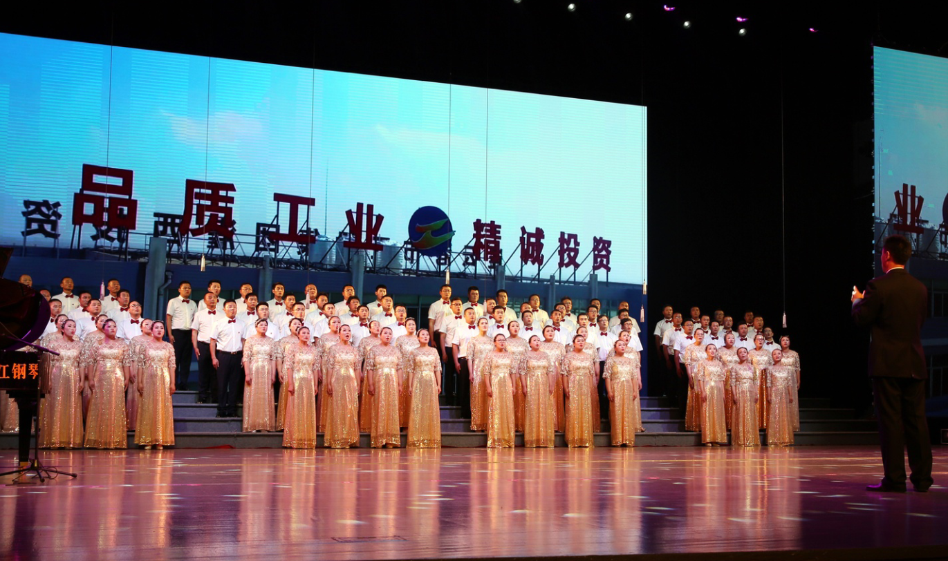 “風在吼,馬在叫,黃河在咆哮……”嘹亮的歌聲在市藝術中心舞臺上響起, 6月28日下午,集團公司2019年“感黨恩、頌祖國、贊工投”大合唱比賽在此隆重舉行,灌西公司百人合唱團獲得二等獎,集團黨委書記、董事長楊龍為灌西合唱團頒發(fā)獎杯。