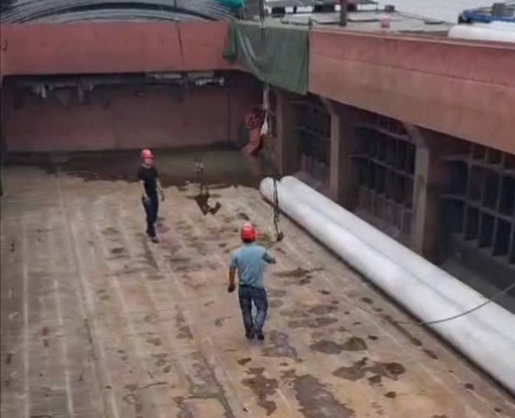 “要先將掛鉤小心地分開,然后將掛鉤分別掛在管樁的兩頭,將它吊起的時(shí)候,要注意安全……”,碼頭掛鉤工人一邊演示一邊說(shuō)。宵洋公司全體管理人員在一旁聽得很仔細(xì),注視著每一個(gè)細(xì)節(jié)。該公司經(jīng)理靳國(guó)祥還下到船艙親自體會(huì)。從最初的手法笨拙到逐漸熟練,沒一會(huì)兒功夫就與老手不相上下了。