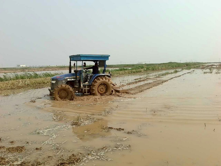 近日,實業(yè)公司農(nóng)業(yè)分公司,對埒南近十六畝試驗稻田進行除草、耕、和、耙。今日人機結合,下試驗田內(nèi)管道,試驗稻田內(nèi)進水口與排水口管道共計二十余道,預計兩天內(nèi)完成。(史祥燕)