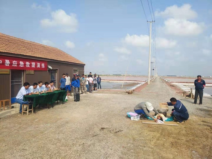 為了貫徹落實灌西投資公司“安全生產月”活動,7月9號在埒南制鹽分公司八班舉行應急演練,學習中暑急救等安全救援知識。明威公司分管安全領導徐永年與安全員胡繼軍參與演練學習。(明威 牛瑩)