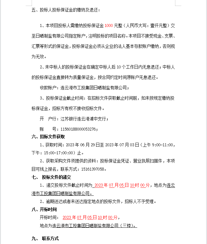 連云港市工投集團日曬制鹽有限公司漏電斷路器等物資招標公告