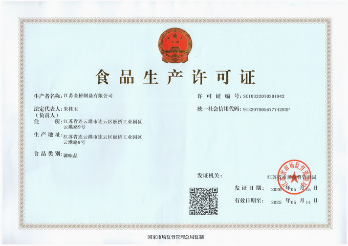 5月15日,我公司順利獲得《食品生產許可證》,成為江蘇省第一家獲得《食品生產許可證》的國家食鹽定點生產企業。