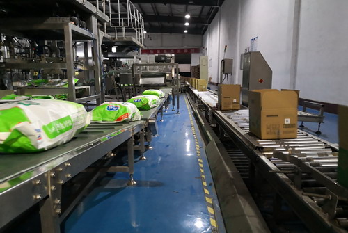 公司配送中心正在裝運(yùn)小包裝鹽產(chǎn)品