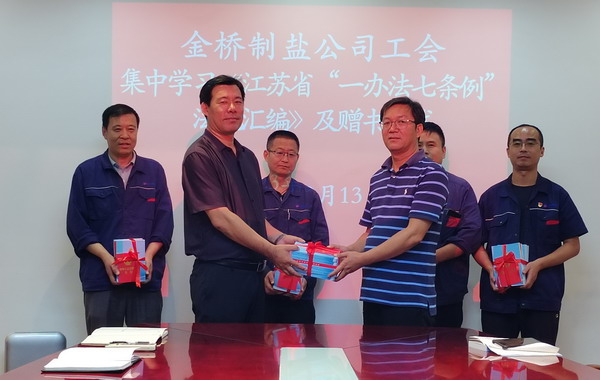 為落實市總及集團工會相關要求, 9月13日,我公司工會舉辦集中學習《江蘇省“一辦法七條例”法規匯編》活動及贈書儀式。公司工會負責人,各分會、人資部門、安全部門負責人,部分職工代表參加。