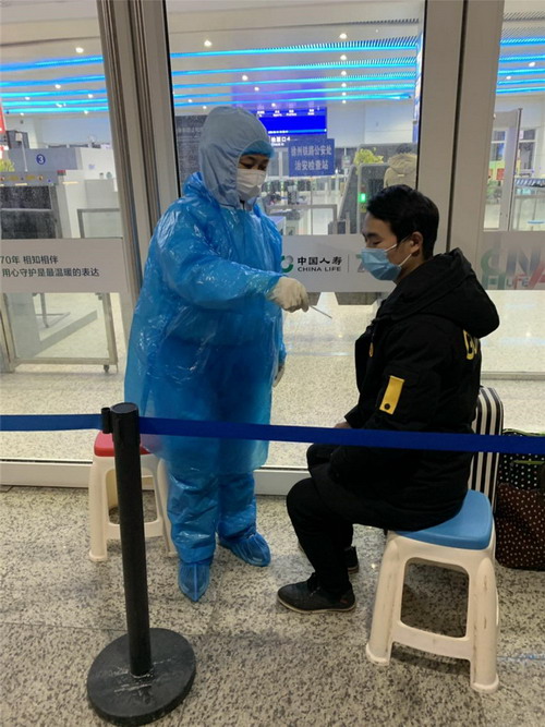 朱詠梅是來自江蘇金橋制鹽有限公司的普通員工,在連云港市志愿者協會的統一安排下,每天到連云港市高鐵站測溫點配合醫務人員為乘客檢測體溫,并協助醫務人員對體溫出現異常的乘客進行復查。每天的服務都到深夜零點,等到送走最后一位乘客才回家。