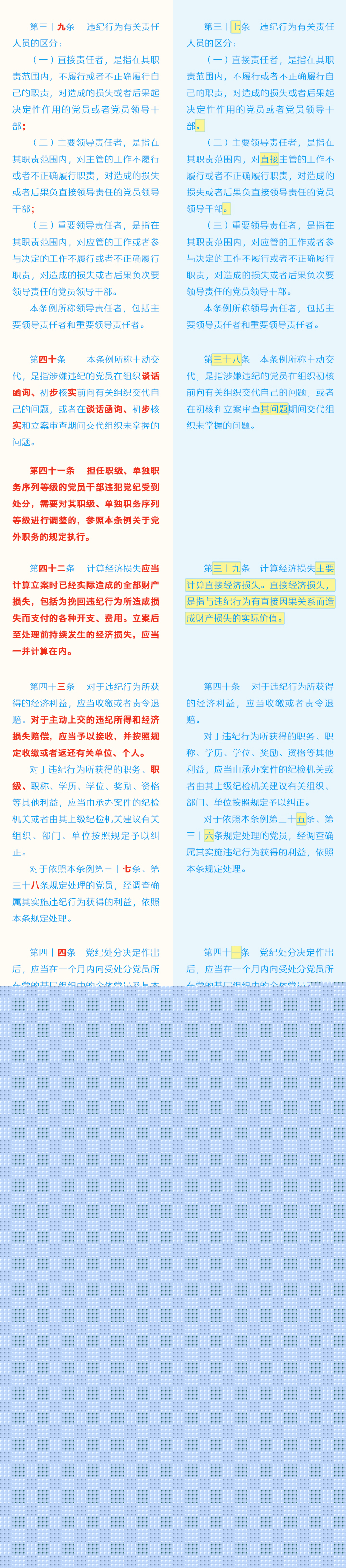 《中國共產黨紀律處分條例》修訂條文對照表圖片