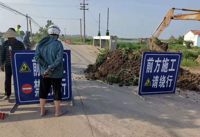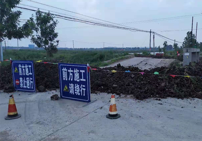 此路段是青口鹽場場內(nèi)主要道路,由于持續(xù)高溫,橋面拱起、斷裂。到達(dá)現(xiàn)場后,公司立即組織人員勘察橋梁情況,封閉了現(xiàn)場交通,及時在公司以及社區(qū)QQ群、微信群發(fā)送繞道通行信息,并設(shè)置警示牌,確保夜間交通安全。
