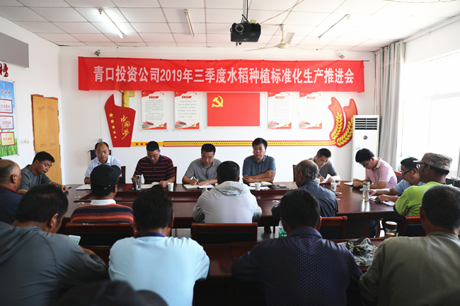 8月16日上午,公司在大新農場召開2019年度第三季度水稻種植標準化現場觀摩會。大新農場相關管理人員、全體條田工及外包經營戶代表參加會議??偨浝硎废槠匠鱿瘯h,副總經理周緒祥主持。