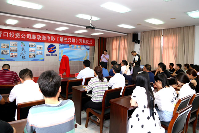 7 月 10 日上午,青口公司隆重舉行廉政微電影《第三只眼》開機(jī)儀式。集團(tuán)公司紀(jì)委副書記王建松、 青口公司黨委書記胡傳法及全體班子成員、機(jī)關(guān)全體管理人員、劇組人員參加了本次儀式。