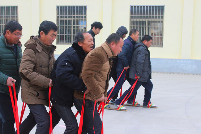 四人穿鞋同步走活動現場熱鬧非凡,隊員們聚在職工活動中心大院內,活動要求四人穿一雙木板鞋同時走路,這對配合能力的要求非常高,隊員們統一口號,步調一致,最終這項高難度項目的第一名由盧忠歌等四人組合獲得。