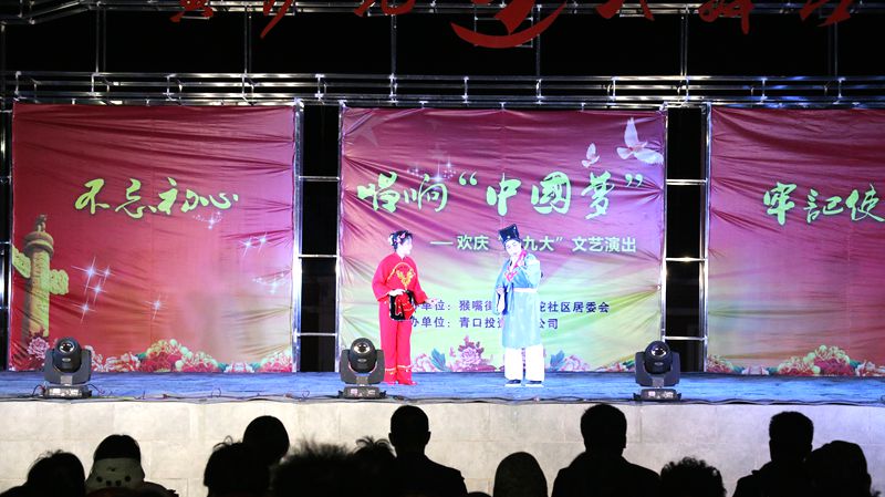 10 月 23 日 晚,猴嘴街道黃沙坨社區(qū)和青口公司聯(lián)合舉辦的以“不忘初心 牢記使命 唱響中國(guó)夢(mèng)”為主題的慶十九大文藝演出活動(dòng)在黃沙坨大舞臺(tái)舉辦,這是在秋收前,用豐富多彩的文娛方式慶祝十九大召開(kāi)。猴嘴街道黨工委副書(shū)記王新崗、公司黨委副書(shū)記、副總經(jīng)理史祥平現(xiàn)場(chǎng)觀看了演出。