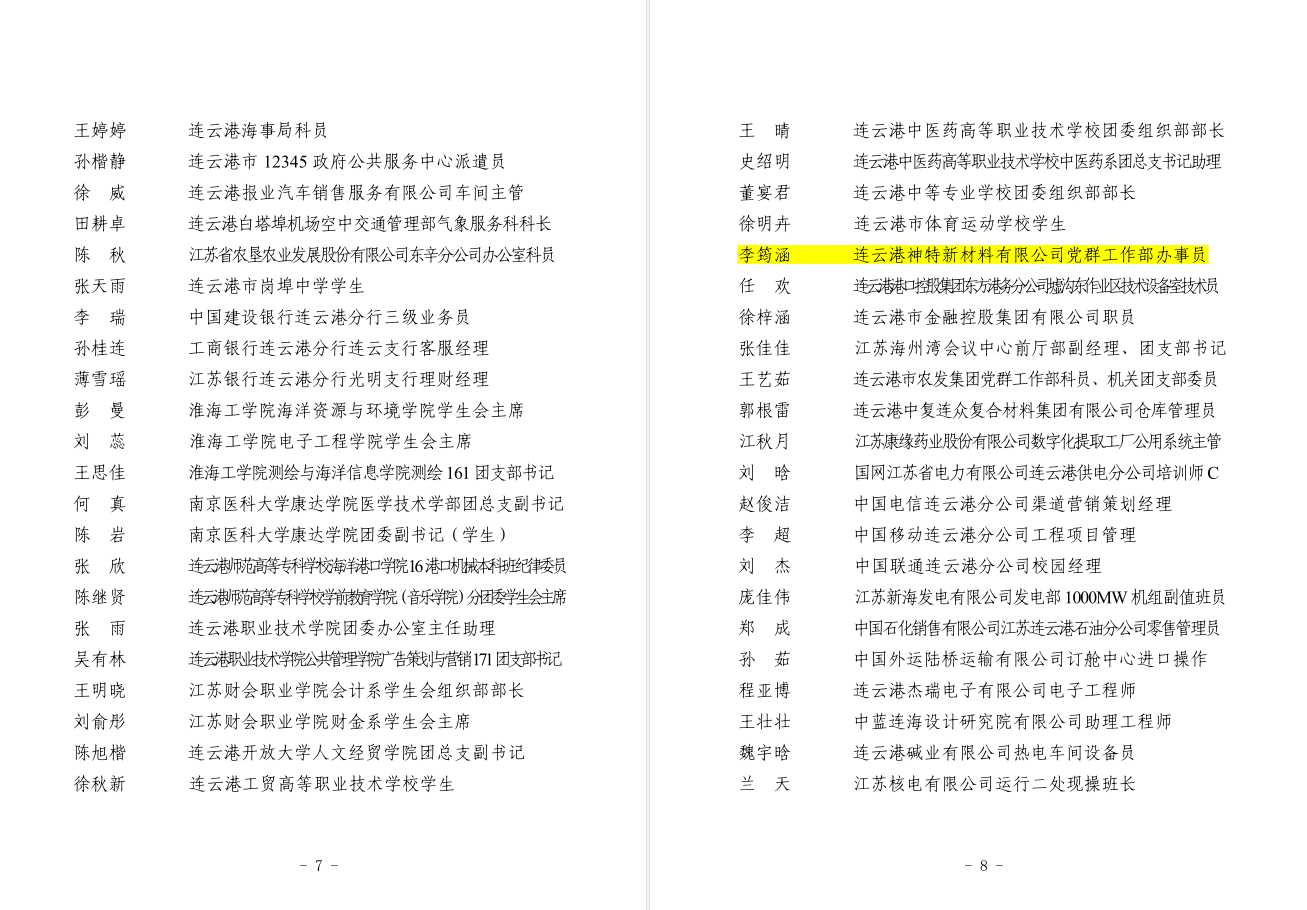 近日,共青團連云港市委員會公布了2018年度“連云港市優秀共青團員”“連云港市優秀團干部”“連云港市五四紅旗團委”“連云港市五四紅旗團支部”(總支)名單,我公司員工李筠涵榜上有名,被授予“連云港市優秀共青團員”稱號。