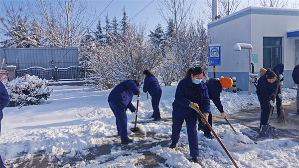 寒風刺骨,大家的熱情很高,尤其是年輕的同事積極主動、相互配合,揮舞著鐵鍬和笤帚,有說有笑,共同努力將積雪清理到路邊。寒冷的天氣讓臉頰涌上陣陣紅暈,但心中的溫暖卻讓我們的笑容更加燦爛。行動是最好的“融雪劑”,奉獻是最好的“防寒衣”。