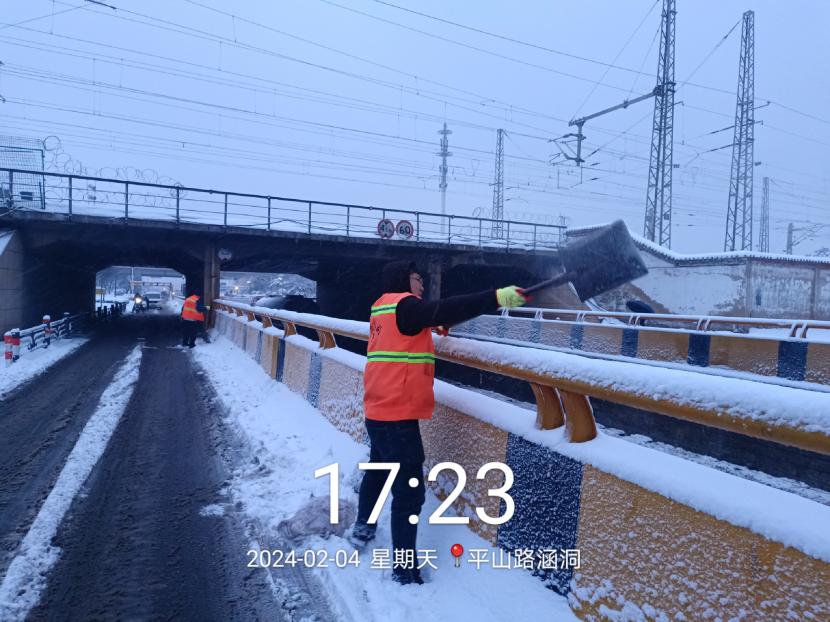 截至晚上22時,公司全員出動500余人次,大小機械100余臺(班),全力確保了轄區(qū)交通線暢通。