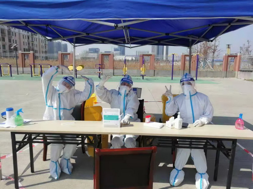 志愿服務(wù)篇。“現(xiàn)在我們是封控區(qū),不能出去給政府添亂,閑也是閑著,所以社區(qū)一招手我們就來了”這是臺北女工委副主任宋文靜的一席話。這波疫情來的突然,緊急核酸檢測緊缺志愿者服務(wù)。在公司”戰(zhàn)疫情、爭貢獻(xiàn)“主題實(shí)踐活動感召下,她已經(jīng)在小區(qū)擔(dān)綱核酸檢測志愿者有兩個(gè)夜晚了。而這一幕決不只在海州主城區(qū),在開發(fā)區(qū)昌圩社區(qū),臺北志愿服務(wù)隊(duì)已經(jīng)成為社區(qū)防疫主力。疫情伊始,臺北下屬海州灣公司黨支部一班人就已經(jīng)奮戰(zhàn)在社區(qū)防疫一線。黨支部副書記蘇玲、女工胡超,與專業(yè)醫(yī)護(hù)人員一道,穿上厚重防護(hù)服,直接站在核酸檢測最前線,這一站就是12小時(shí)。值班后稍作休息他們就又聯(lián)系總經(jīng)理霍正鋼,翔立黨支部副書記姜海洋,入黨積極分子朱文健等參與聯(lián)防聯(lián)控,擔(dān)當(dāng)疫情義務(wù)宣傳員。