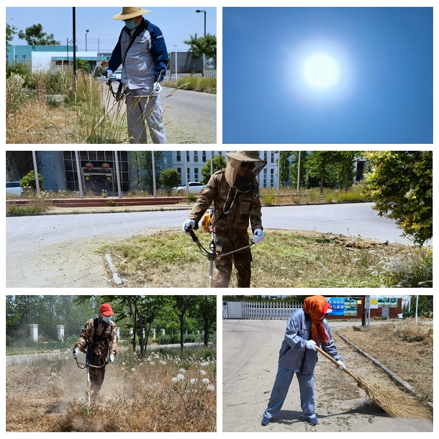 頭頂著炎炎烈日、忍受著蚊蟲叮咬,大伙使用打草機(jī)、鐮刀等工具,對(duì)雜草、高草進(jìn)行割除。走近細(xì)看,他們的臉上和手臂上都布滿汗珠,衣服早已濕透貼在身上。除草過(guò)程中,草渣紛紛濺到他們的身上,但這絲毫沒(méi)能影響他們工作的節(jié)奏。伴隨著機(jī)器的轟鳴聲,一片片規(guī)格一致、邊緣平直的綠草坪映入眼簾,淡淡的清香綠草味撲鼻而來(lái),整個(gè)綠地充斥著整潔的氣息。