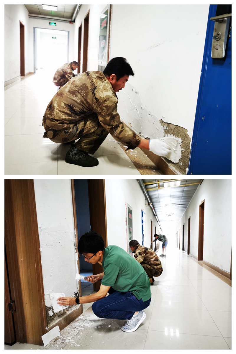 美多利公司綜合辦公樓一樓由于空氣潮濕,墻體大多墻皮剝落,不僅影響美觀,還會污染環境,給公司形象造成了一定影響。今天上午,為美化園區辦公環境,優化園企職工的辦公體驗,美多利公司全體職工“擼袖上陣”,鏟除綜合辦公樓墻面剝落的墻皮,并重新涂刮墻面石膏,使原本斑駁的墻面煥然一新。