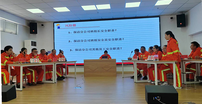 為提升職工安全知識素養(yǎng),強化職工防災(zāi)減災(zāi)安全意識,助力公司安全管理各項工作再上新臺階。5月14日下午,保潔分公司在悅升401會議室開展防災(zāi)減災(zāi)”安全知識競賽活動。來自保潔分公司近50余名職工參加。