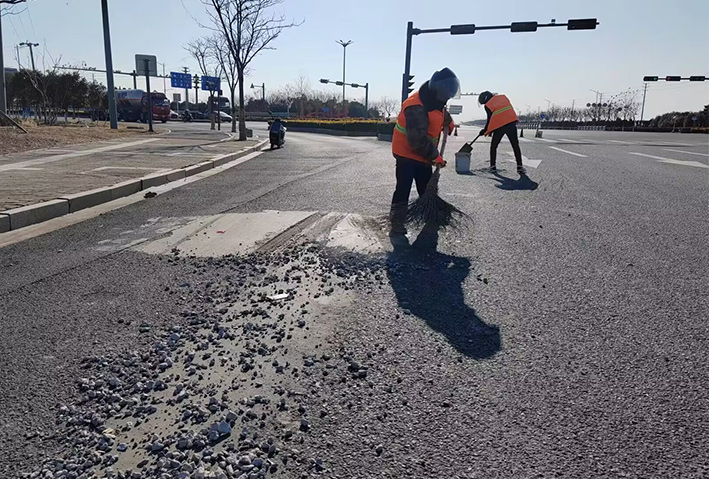 燈塔路路口,巡查人員發(fā)現(xiàn)大面積車輛拋灑物,生產(chǎn)骨干張學(xué)軍、徐習(xí)東、陸永柱接到公司應(yīng)急處理電話第一時間趕赴現(xiàn)場,盡管天氣寒冷,但是大家干的熱火朝天,共清理泥塊30多處,長達800多米長;轉(zhuǎn)運石子、石塊50多車,他們再次用行動彰顯黨員示范風(fēng)采。