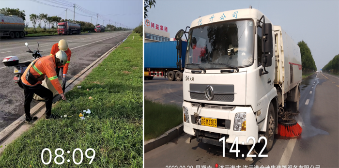 ? ? ? ?提升道路保潔率。出動(dòng)高壓沖洗車(chē)、清掃車(chē)、對(duì)園區(qū)主次街路開(kāi)展洗掃除塵、清掃保潔作業(yè),對(duì)重點(diǎn)路段祥和路、云港路實(shí)行“前高壓、后洗掃”的聯(lián)合編組作業(yè)模式,增加機(jī)械清洗頻次,保證道路潔凈度,進(jìn)一步降低道路含塵量。充分發(fā)揮職業(yè)職能優(yōu)勢(shì),實(shí)施“立體化、全覆蓋”的保潔模式,通過(guò)人機(jī)結(jié)合清洗主道和輔道5萬(wàn)余米,為園區(qū)的靚麗再添新風(fēng)景。