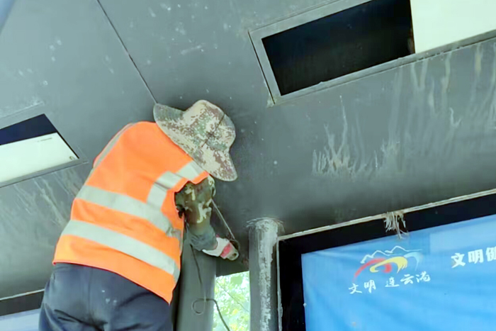 連日來,工作人員對對徐新路、228國道、徐圩大道等處沿線公交站臺進行全面除銹刷新作業,大家每日持續工作7個小時以上,不怕臟與累,始終保持高昂斗志。
